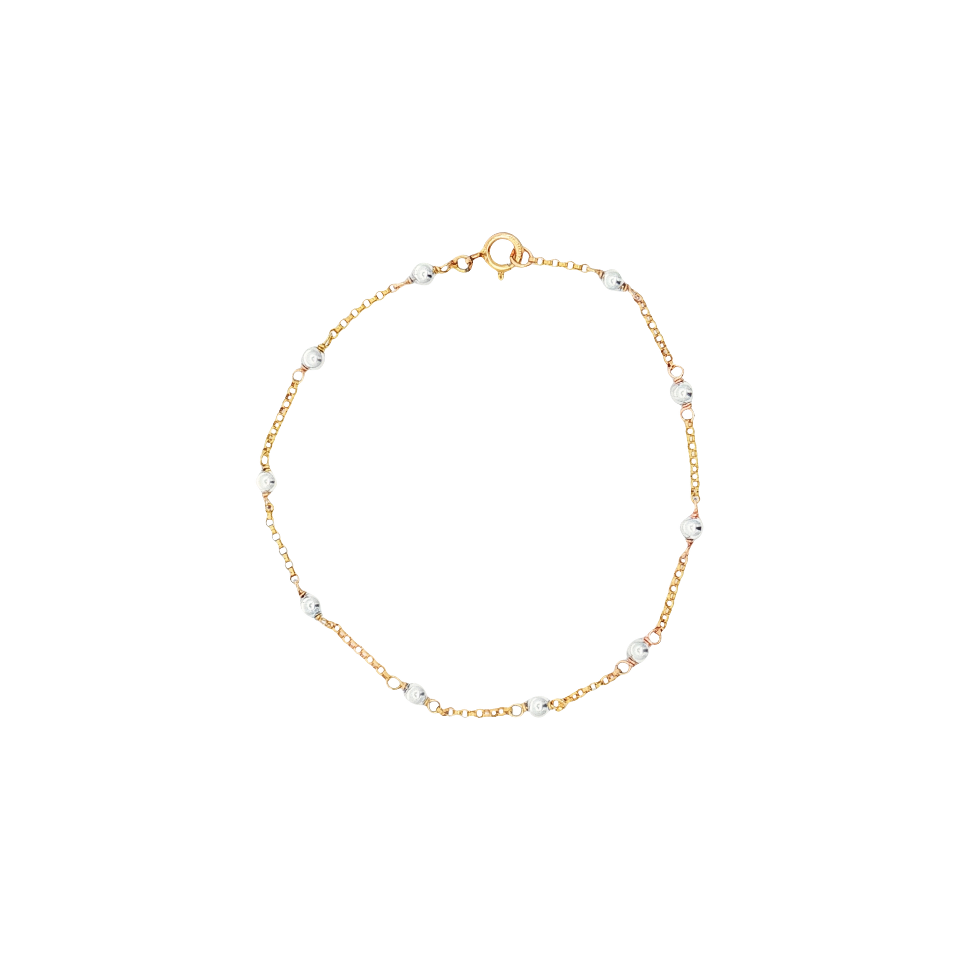Elevate your everyday elegance with this two-toned beaded gold-filled bracelet. Designed for versatility, wear it as a refined standalone piece or visit our charm bar to personalize it with your favorite charms. The lustrous gold-filled construction ensures lasting beauty and durability, making it a timeless addition to any jewelry collection.
